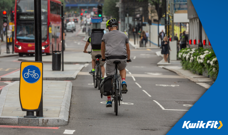 Cyclists don’t have the protection of a vehicle, so it’s important that you give them plenty of space. The Highway Code now recommends at least 1.5 metres (roughly a car door’s width) when overtaking cyclists at speeds of up to 30mph, and more when you’re going faster.