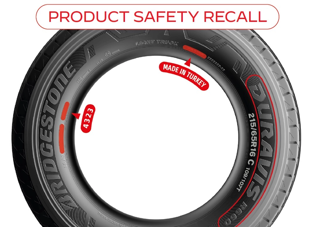 Bridgestone has announced that it will be conducting a product safety recall for certain Duravis R660 ECO 215/65R16C 109/107T van tyres.